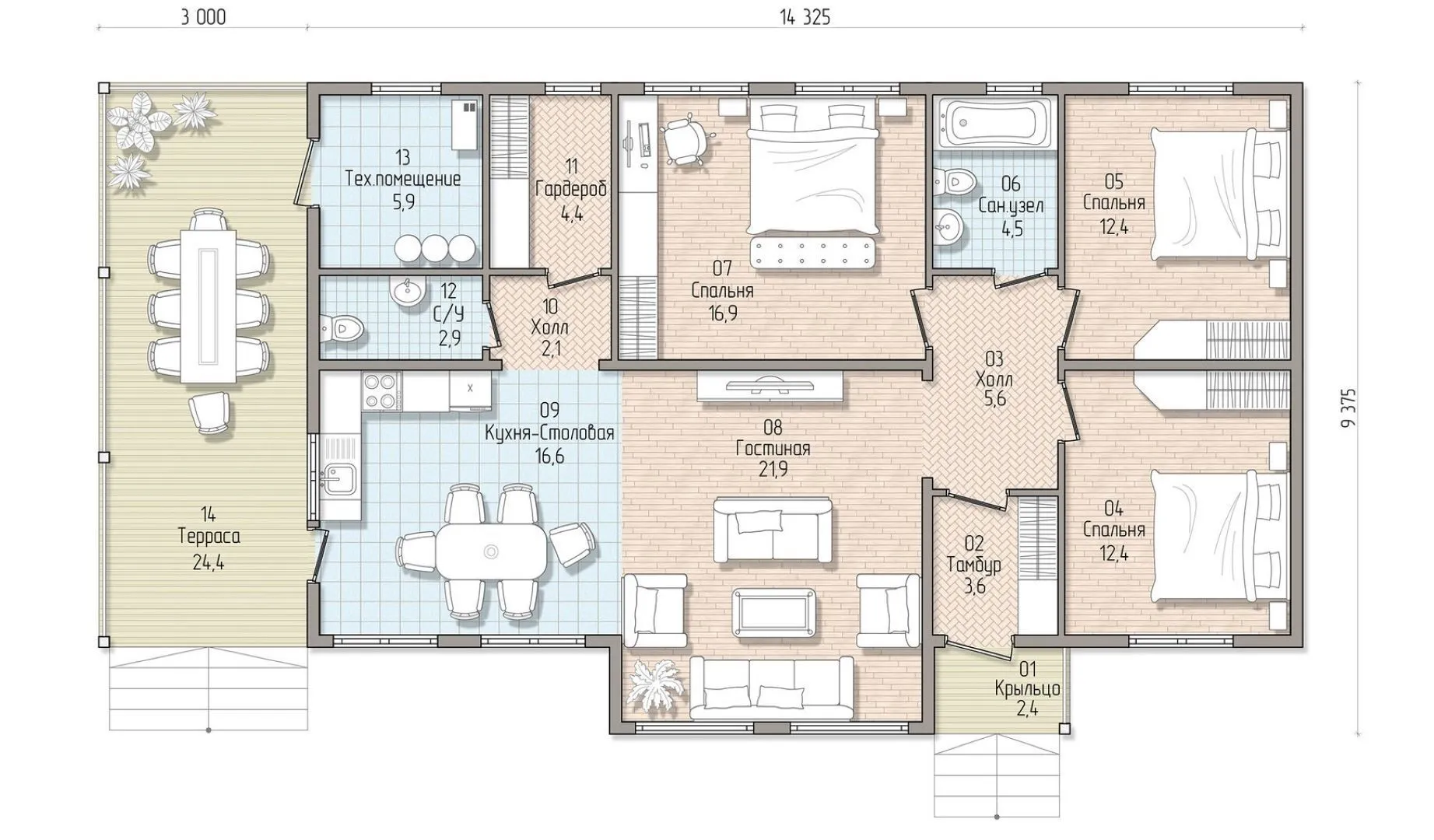 Проект одноэтажного дома 94 м²